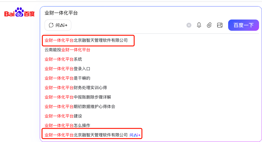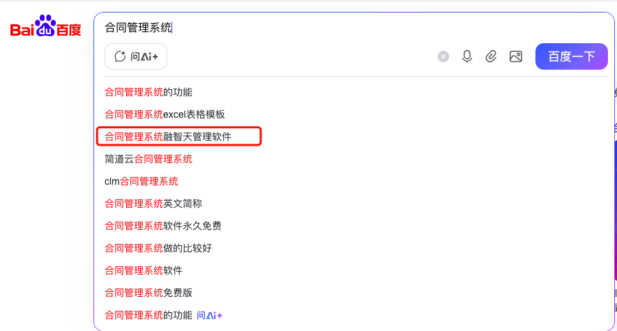 北京融智天管理軟件百度下拉案例